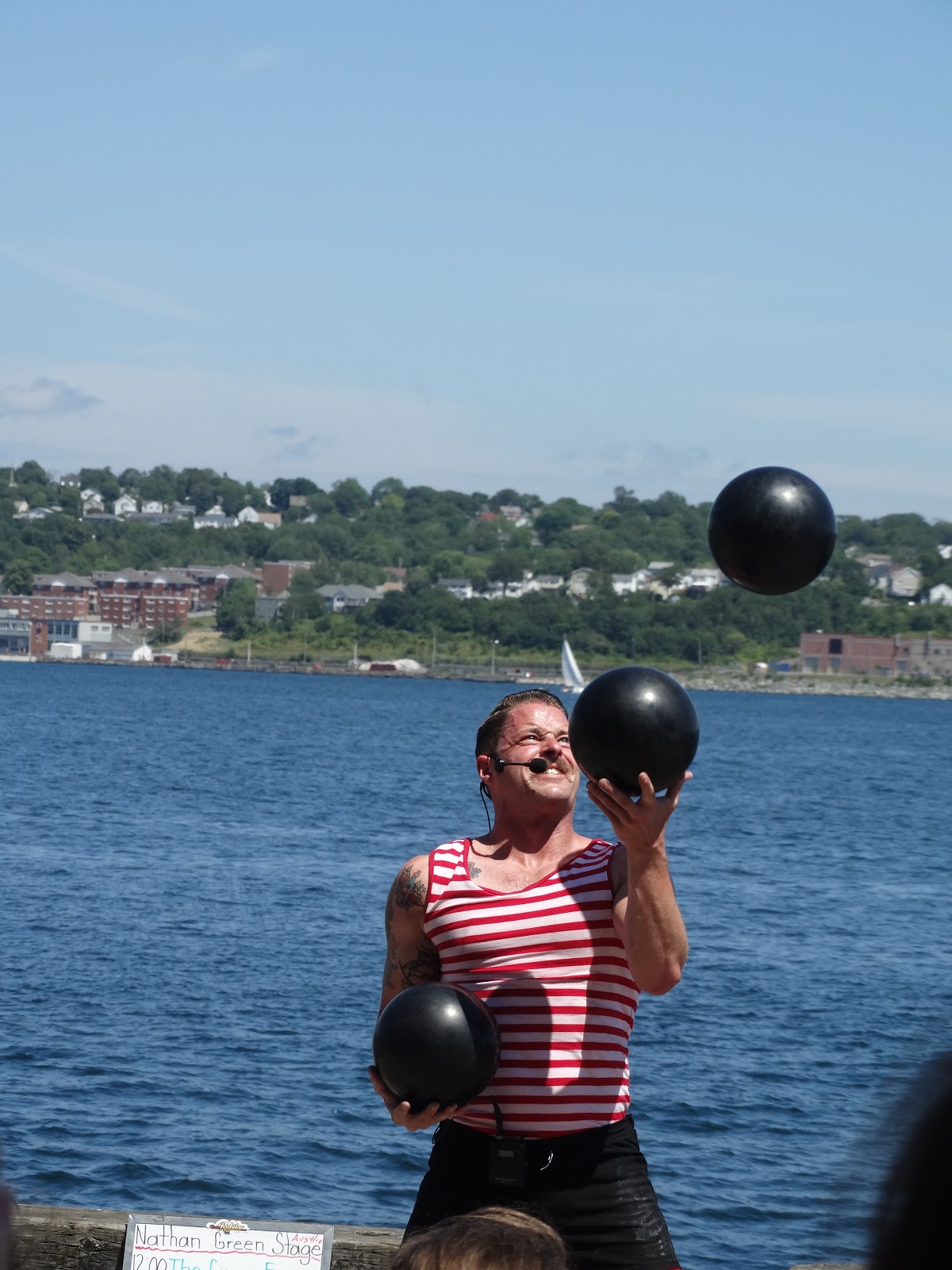 The Halifax Busker Festival has been presented for 32 years now and was very well-attended. This year there were 13 performers and 12 of them did about 16-17 shows over the 6 days that it ran. We attended along with our guests from P.E.I., Toni and Paul, and caught 5 acts. Al returned on August 6 and watched 6 more.